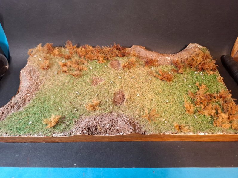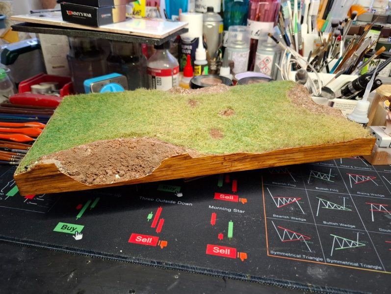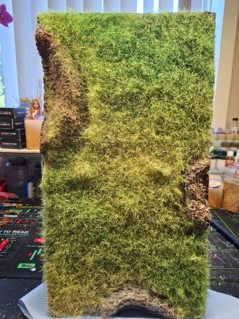 Photo #40. It’s the first time I’ve used this method for applying static grass, and although the groundwork in the previous shot looks rather flat and uniform, in this shot with the base turned onto it’s edge, you get to see the uneven texture a lot better.