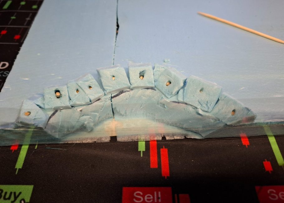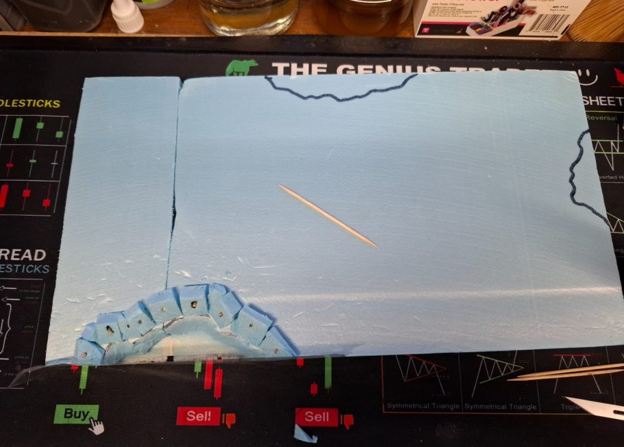 The one at the lower edge in this shot has been cut our and some spare foam board used to make a raised section around the crater.