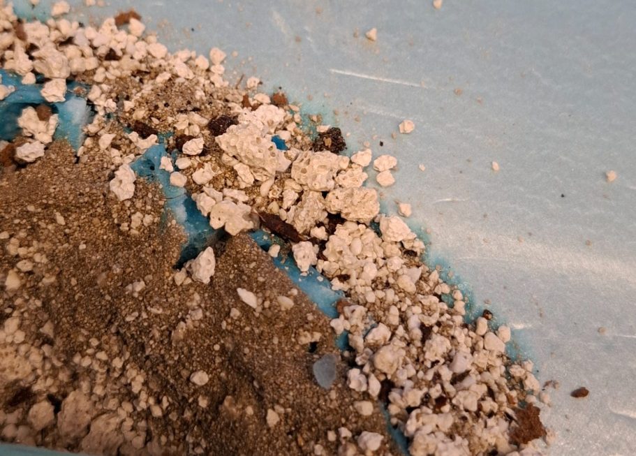 I resorted to going outside ( Scary ! ) and digging a small amount of soil up from one of the flower beds, this when dried and most of the roots removed resulted in the mass of granular material shown in the picture.