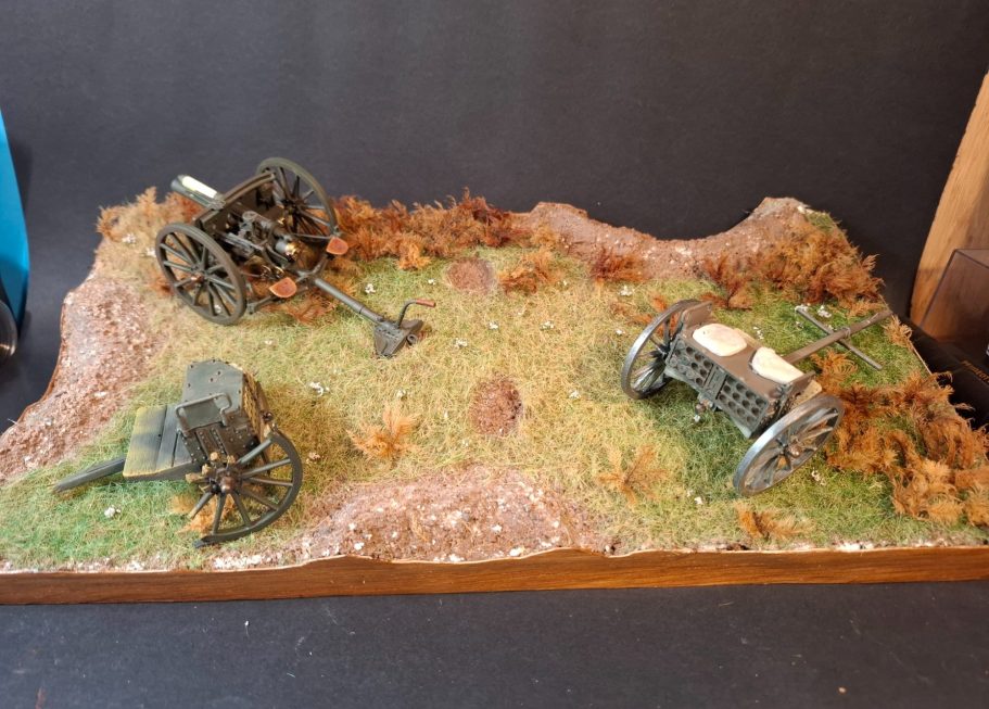 I’d retained the sections of cannon wheel I’d removed, and some of these would be added to the groundwork once I’d got the figures painted, the limbers and cannon permanently in place and the final addition would have to be debris thrown up from the shell craters.