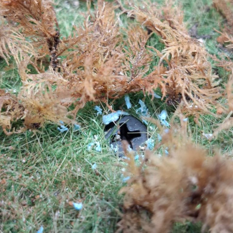 This was fastened in position with superglue, pressing it down firmly into the grass so that it appeared to have “weight”.