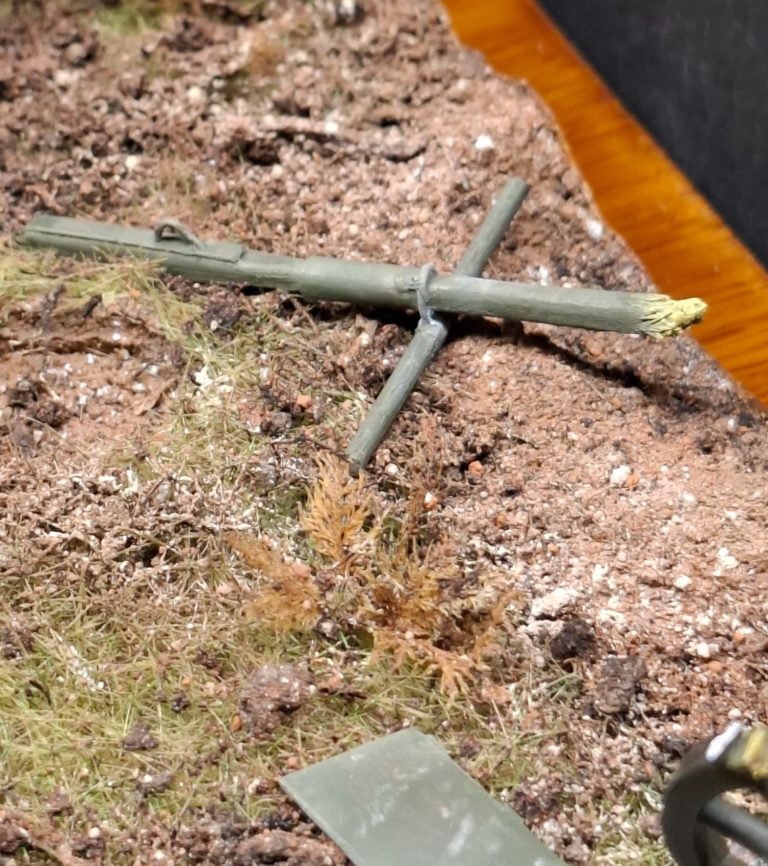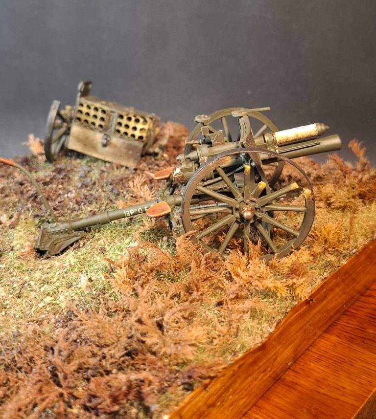 The spade at the back has been sunk into one of the depressions I’d made in the groundwork to depict the force of repeated firing of the cannon and the recoil digging the spade into the earth.