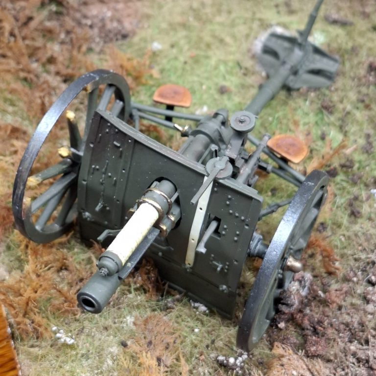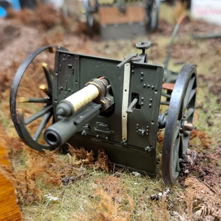 Like the Limber it’s now glued down, pressing the cannon into the grass while the superglue cured.