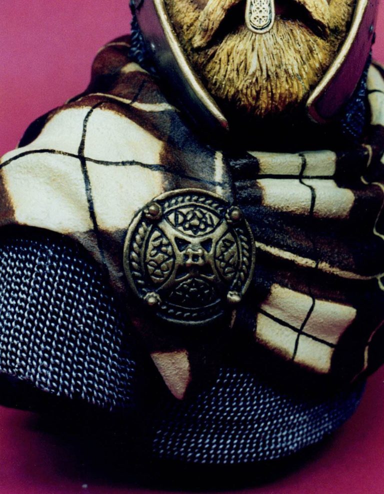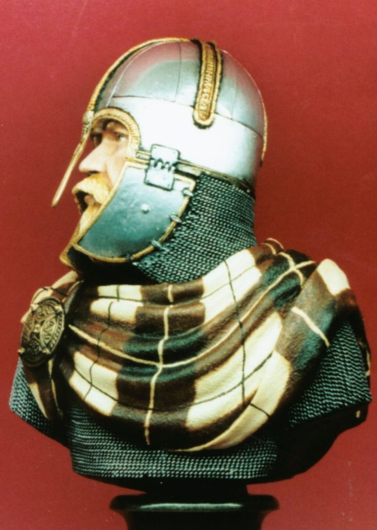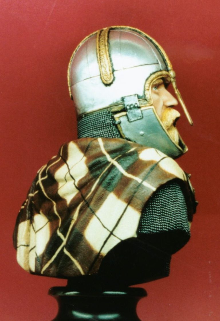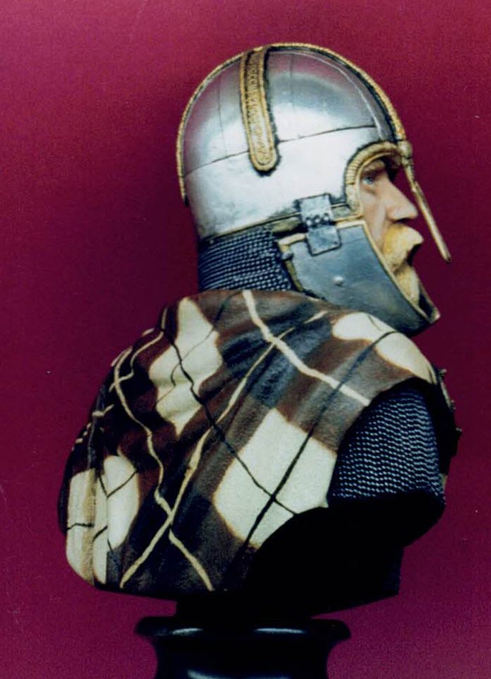 The amazing thing is that Dave Gerrett of Fort Royal Review has painstakingly replicated all the detail in miniature, as perfectly as one could wish. Not only that, he's added a character wearing the helmet, and some beautifully detailed mail, not to mention the brooch holding the cloak. Am I gushing a little too much - well I think the bust deserves it to be honest.