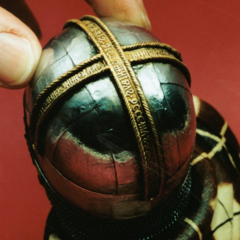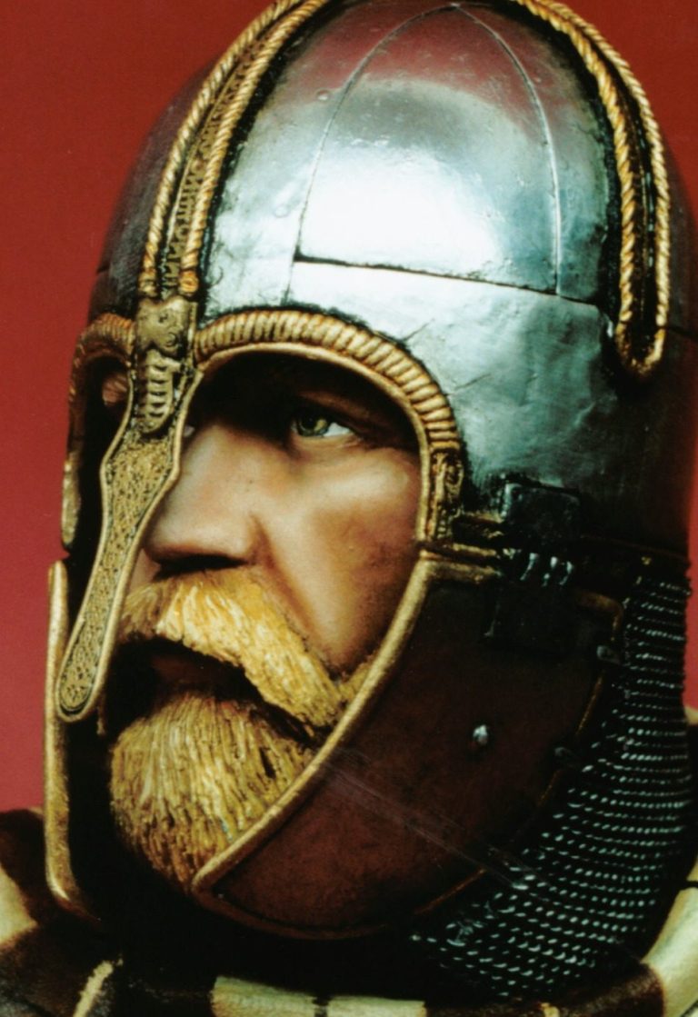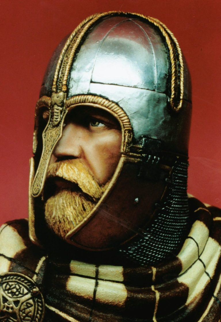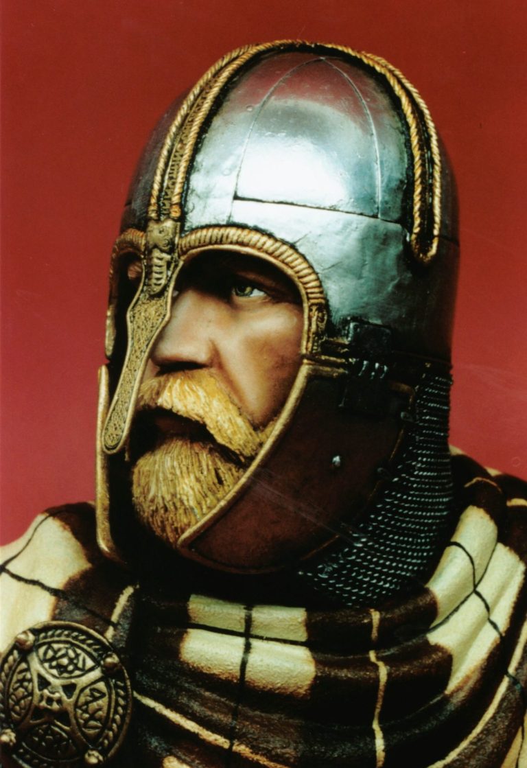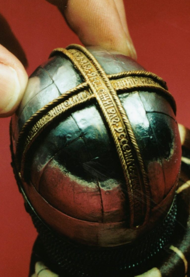 So good in fact was the preservation, that the aventail ( mail neck guard ) which had been rolled into a ball and stored within the helmet for the 12 centuries or so since whoever then had placed it in storage, was restored completely along with the solid plate areas of the helmet.