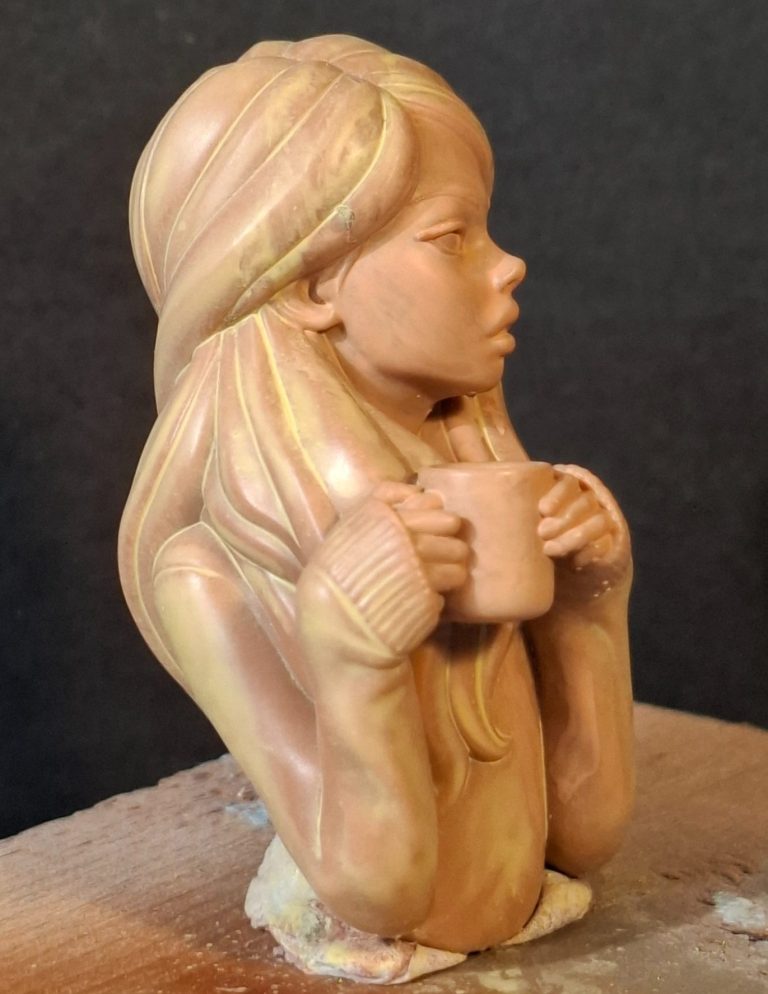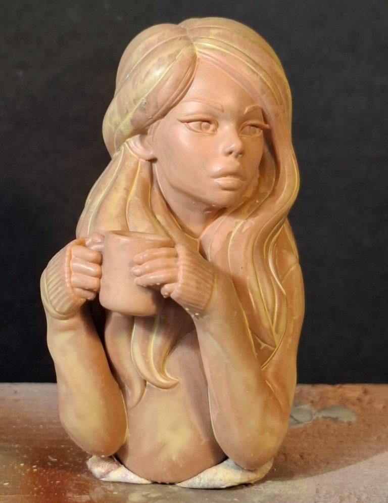 They tend to be on the elbows, the lower area of the hair at the back of the model and the underside of the mug, and as I say, they’re easy to find and pretty easy to clean up.