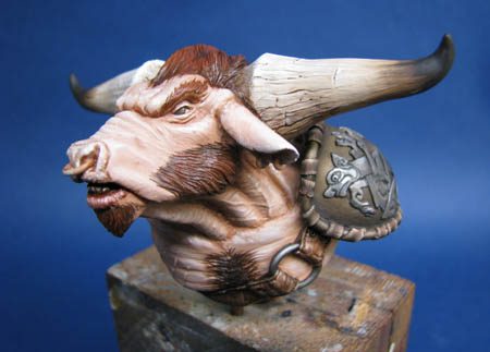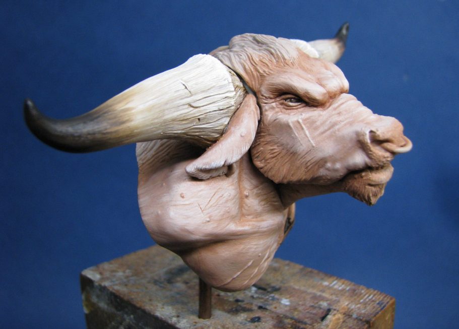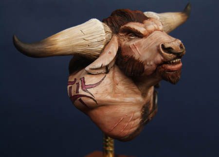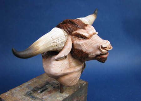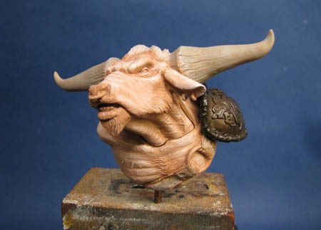 Yes, some sculptors would have produced a larger piece, featuring more of the upper body of the Minotaur, but Chris really does have that kind of skill that allows him to make something much curtailed but still interesting and with plenty of detail.