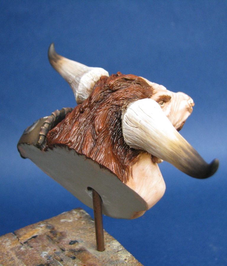 Again, the paint is till wet at this point, but the right hand horn can be seen in photo #9 having been done in the same way and the paint now being dry.