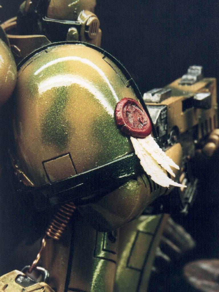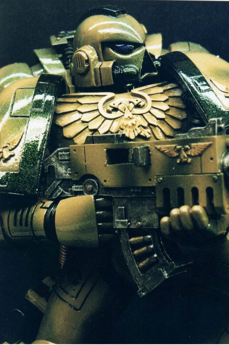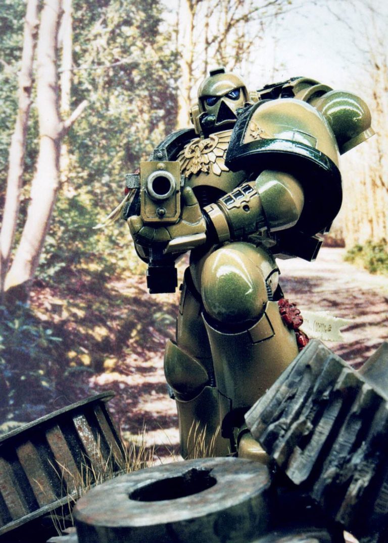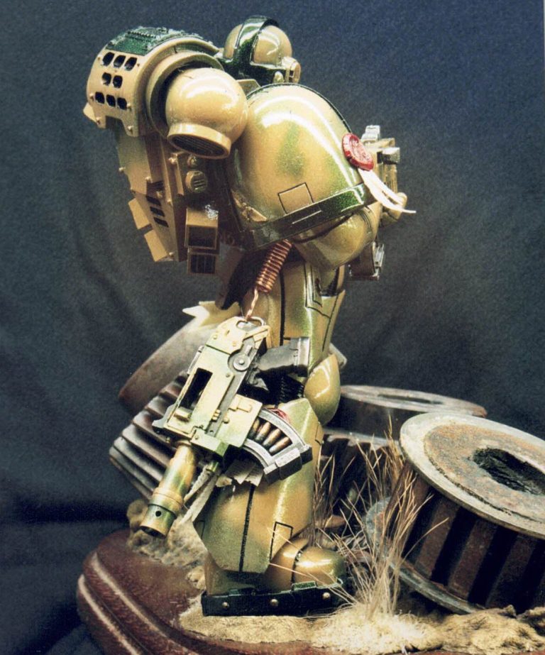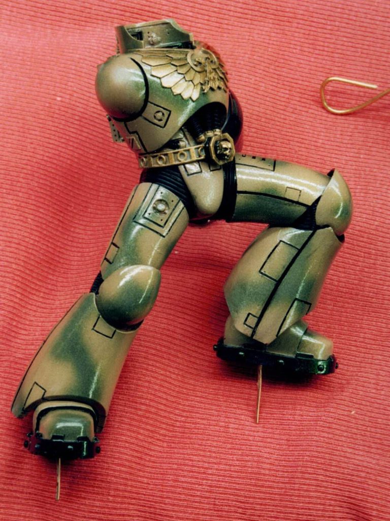 Well, I’d painted the red one as a commission, and although it kind of stuck to the accepted colour schemes for Space Marines at that time, I did feel that the ideas of bright colours on a battlefield – whilst Napoleonic times made use of them – it seemed a little like “Sitting ducks in a shooting gallery” to me.