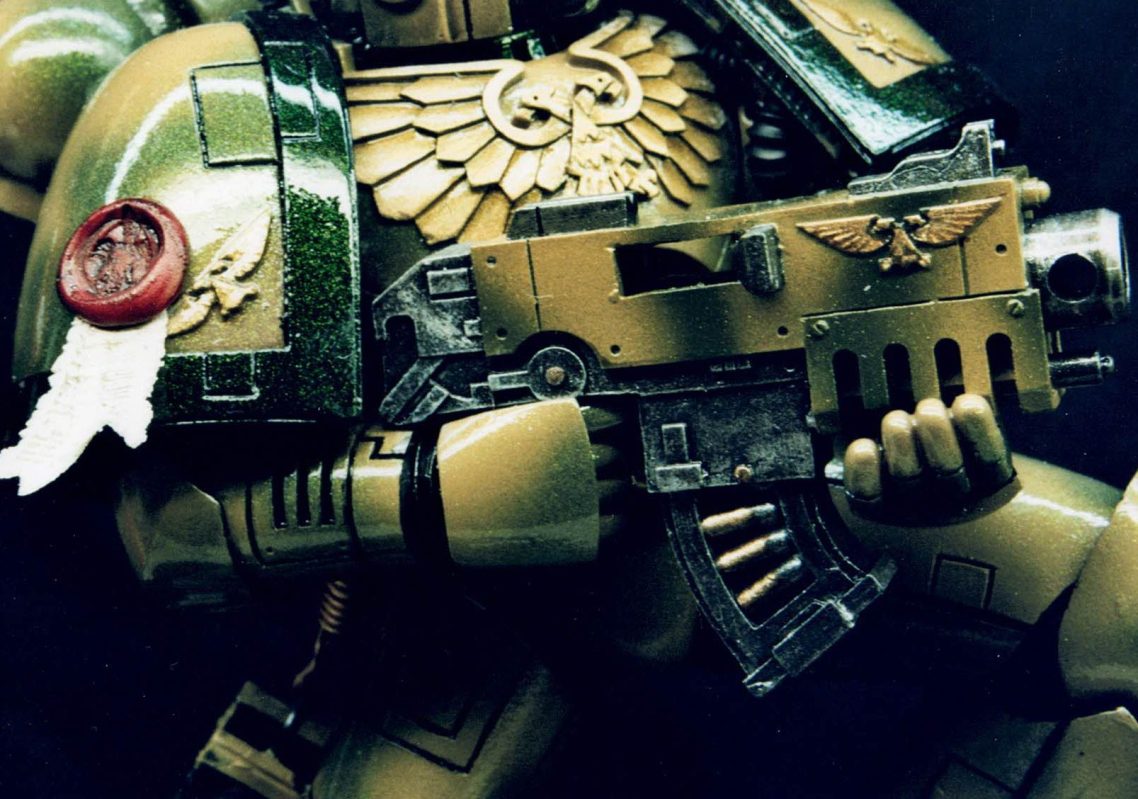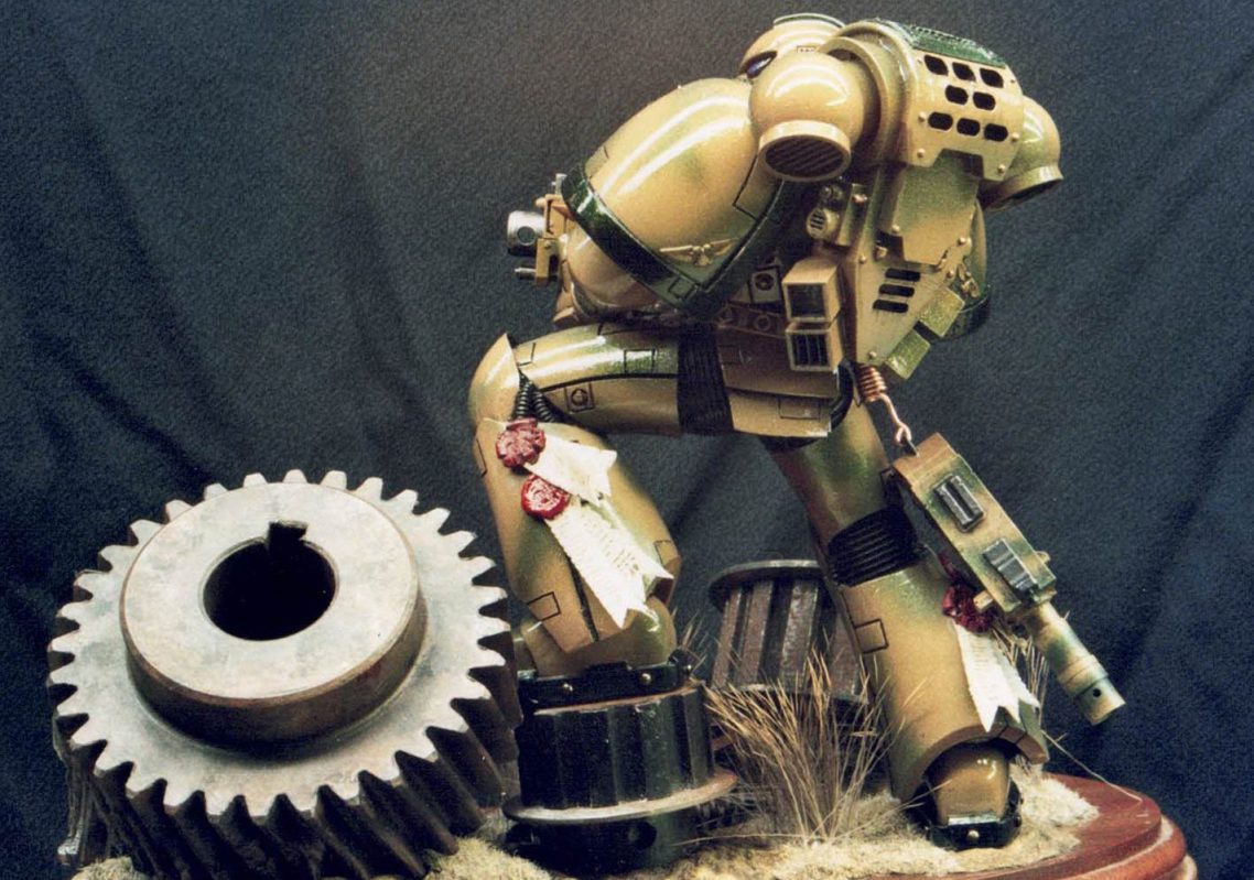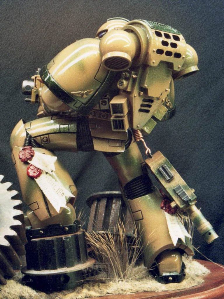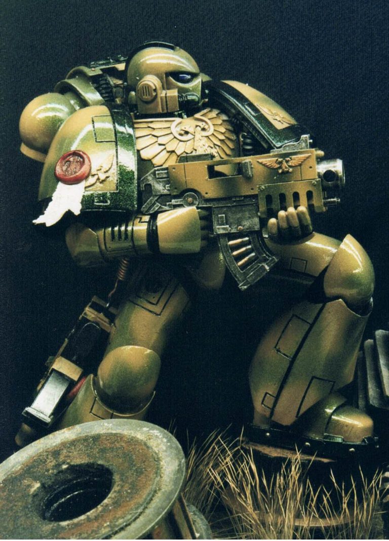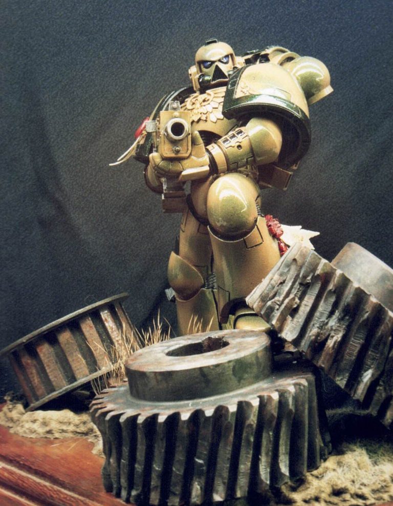 Well, I’d painted the red one as a commission, and although it kind of stuck to the accepted colour schemes for Space Marines at that time, I did feel that the ideas of bright colours on a battlefield – whilst Napoleonic times made use of them – it seemed a little like “Sitting ducks in a shooting gallery” to me.