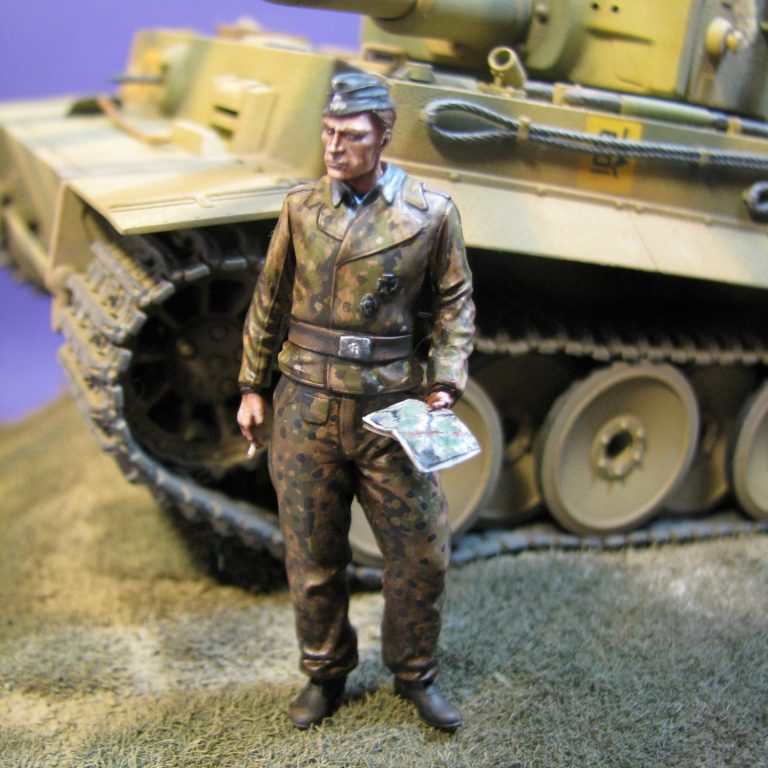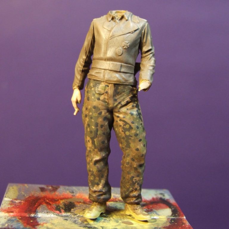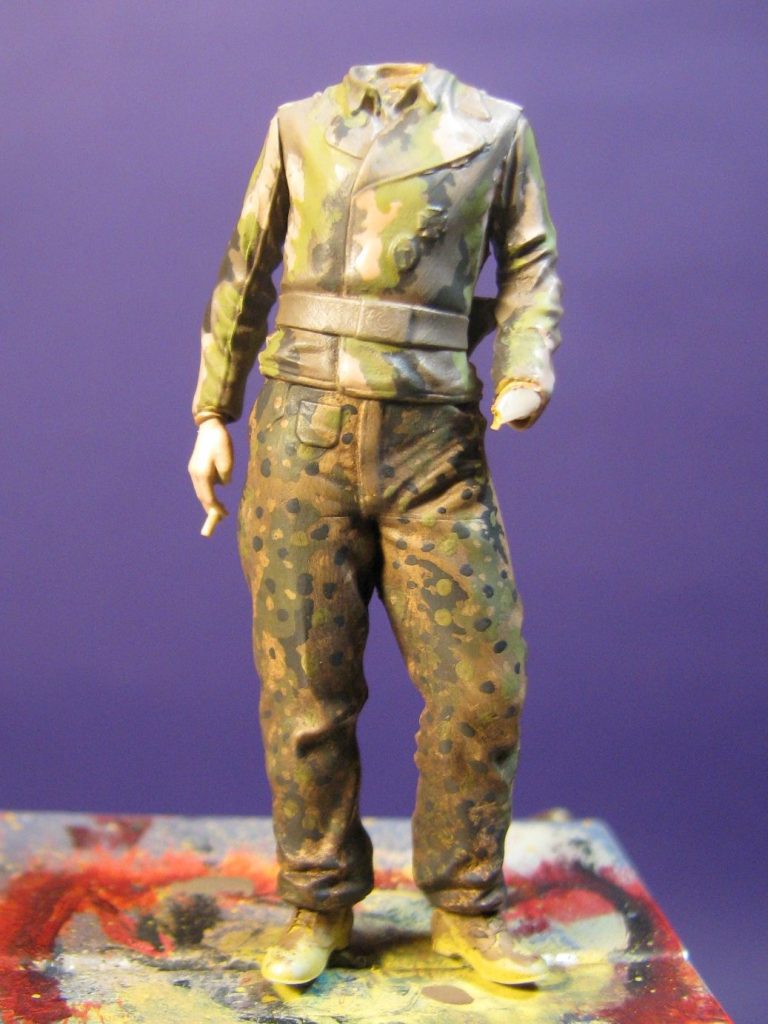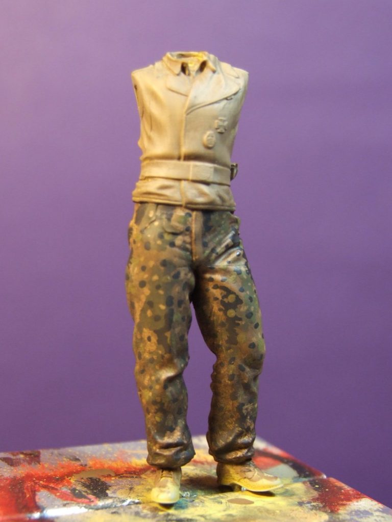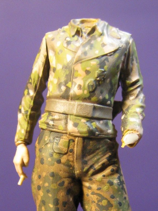 I was going to attempt to copy this for the trousers at least, although at this time I was still struggling with painting camouflage on figure’s clothing.