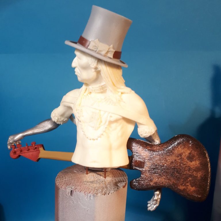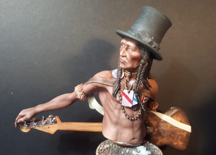 Some might see it as a habit of mine with regard to Carl’s offerings – I did add legs to the Magua and Pawnee busts many years ago, but this was a little different in that someone – Mike Genner – went and said “this one just needs a guitar, doesn’t he ?”