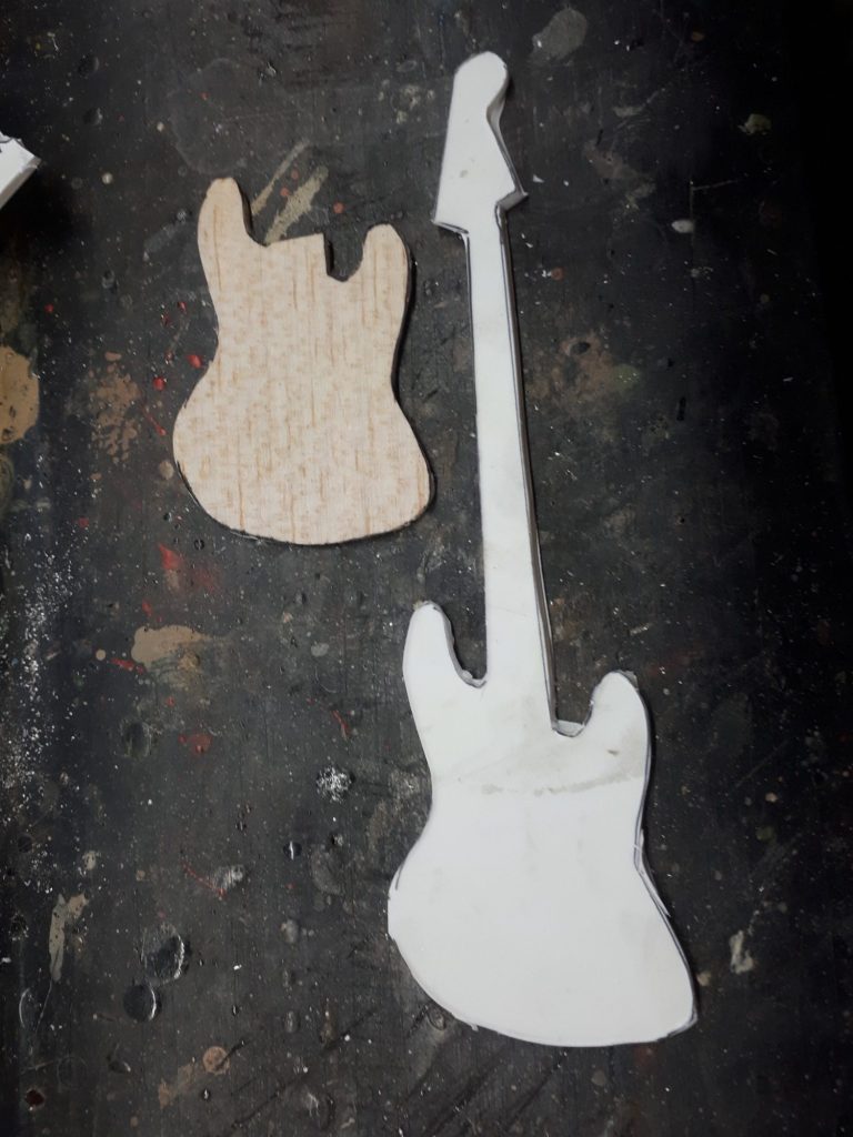 Photo #3 - Ebay had a 1964 Fender Jazz Bass for sale, and the pictures were very useful for reference ( see those at the end of the article ). I printed one off that would be to scale so that I could make a template, sticking it with double sided tape to a piece of foam-board that mimicked the thickness that the scratch-built item would eventually be.