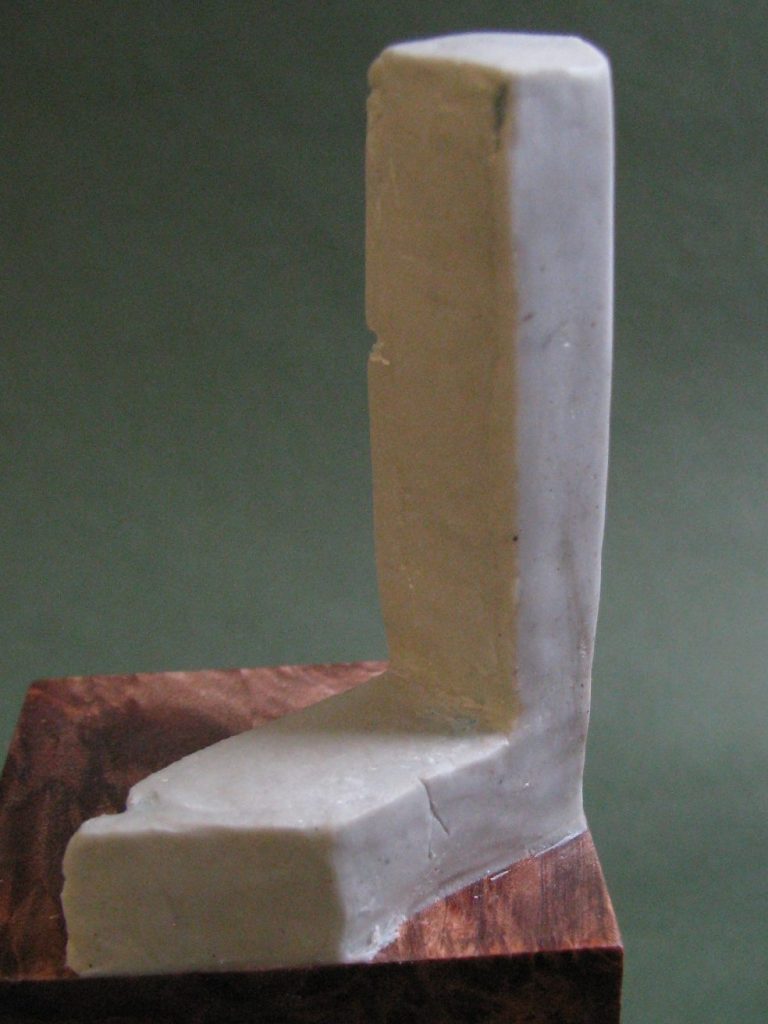 Photo #5 and the back of the model, showing where I’ve now begun adding Titanium White oils to the green and blending the two colours together.