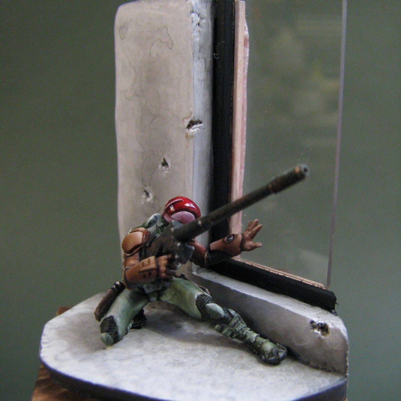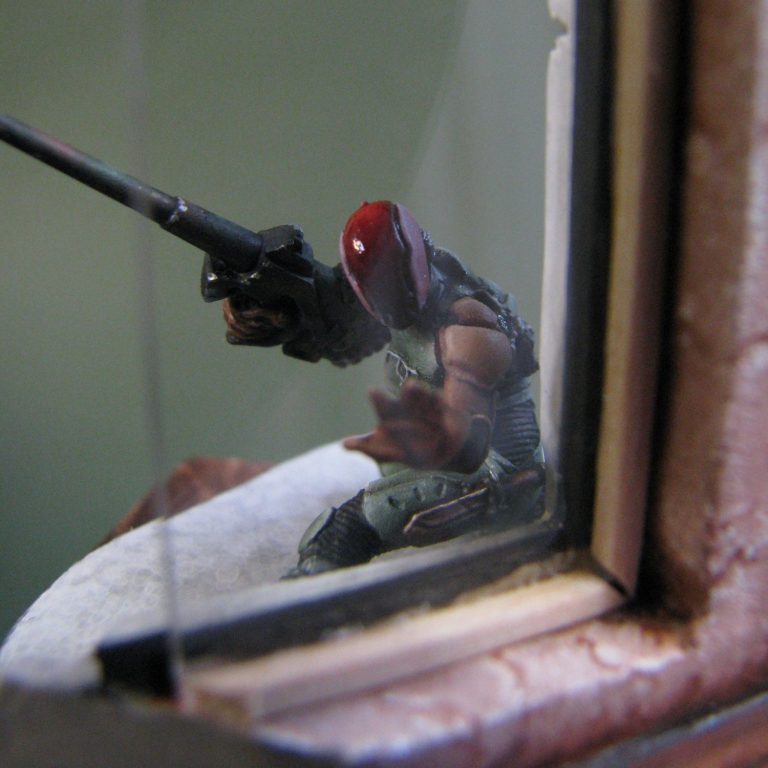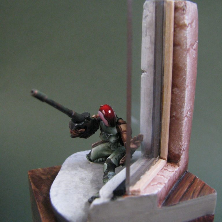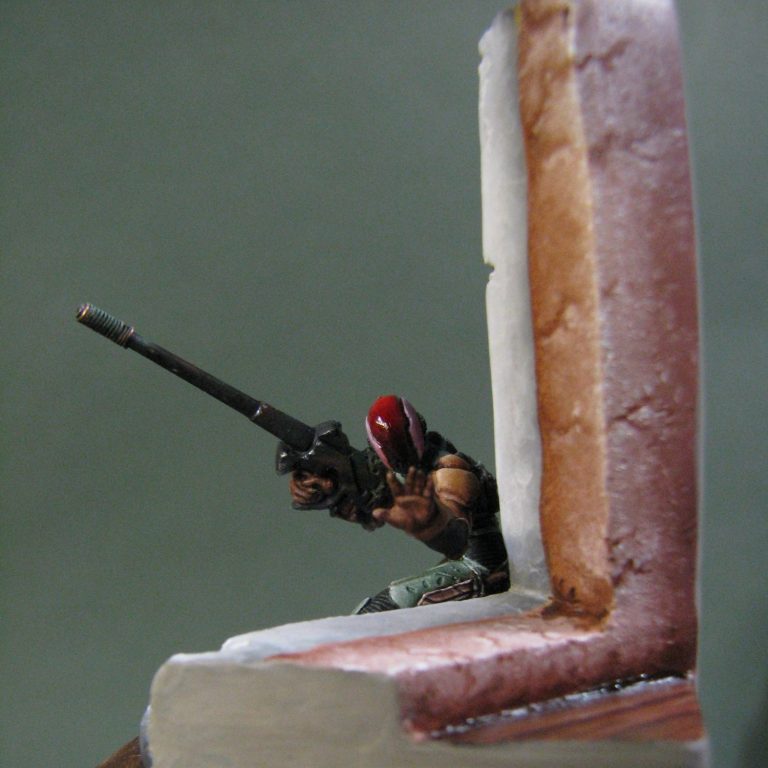 A mix of green and brown camo was added to tie the weapon in to the figure’s clothing.