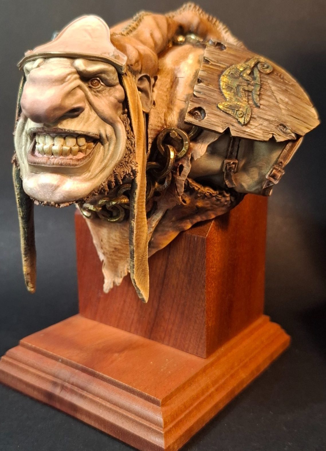The sloped top of the plinth allows for the Klom bust to be located on it, and still has space for the “V” shaped front and the ear flaps of the hat space to hang at the front of the base, but still have the lower section – where a nameplate can be attached – protect them from being broken off.
