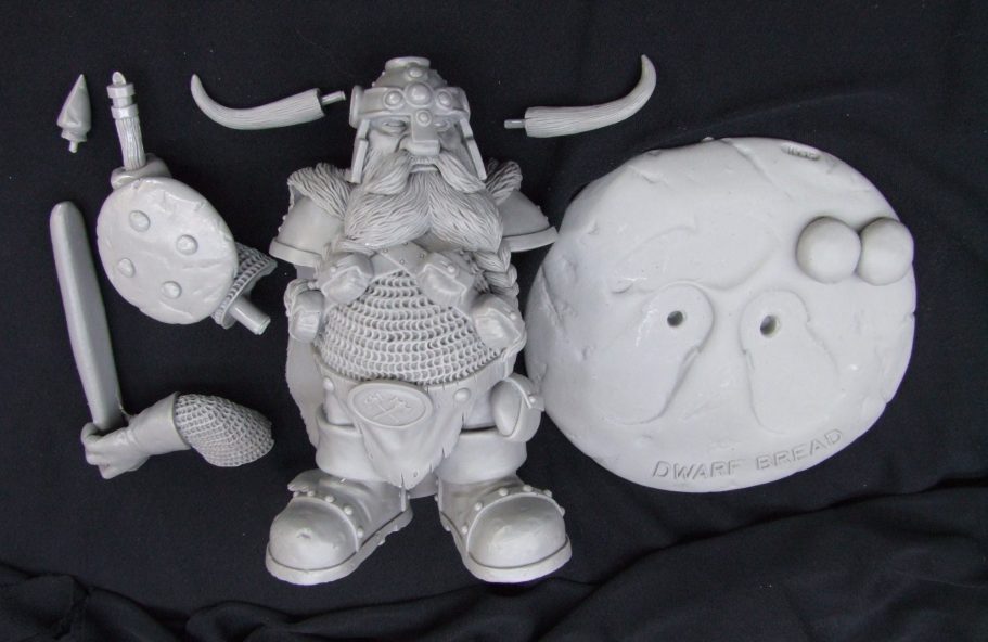 The parts layout are shown in photo #1, and whilst it’s perhaps not too clear, that is a baguette in the right hand, the shield is a flatbread, there’s a bandolier of throwing scones and the base itself is another larger flatbread with two round cobs for extra ammunition. Yes indeed, truly a carbohydrate overload.