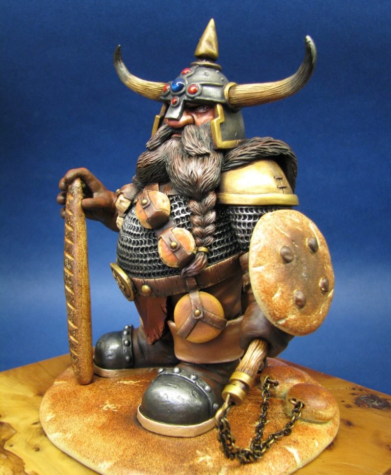 The final shots show the completed model, the horns have been added after being painted, and some chain added to make the cobs on the base into the ends of a flail, yes, they were going to be that all along, but I just wanted to keep you in suspense as to what they actually were.
