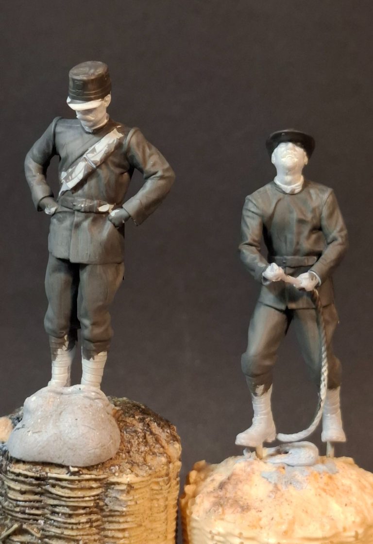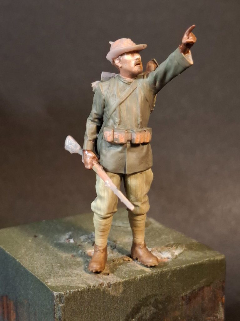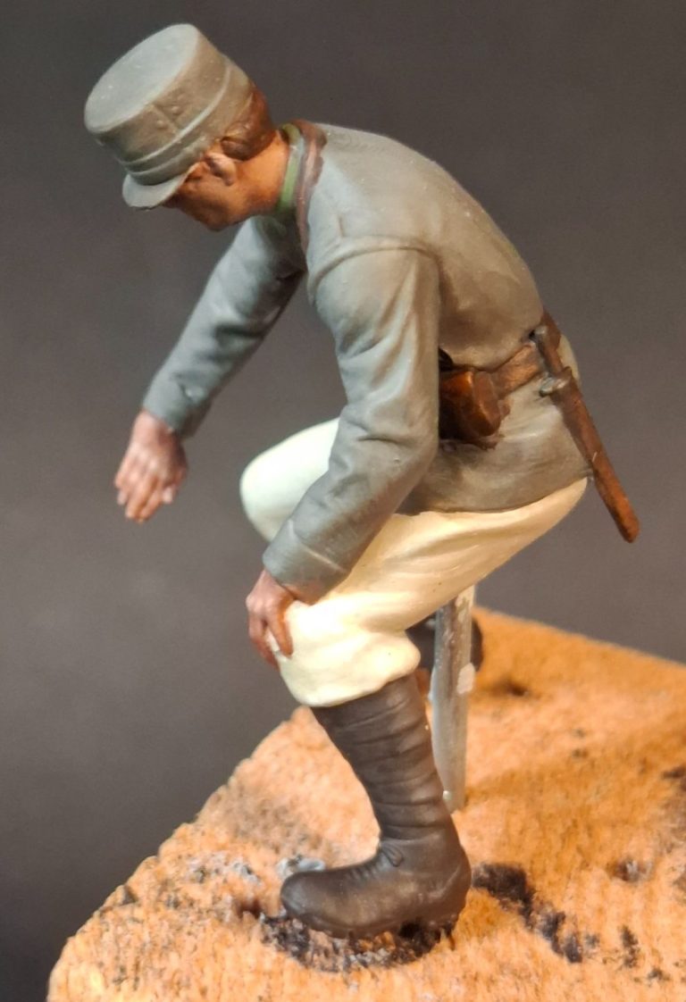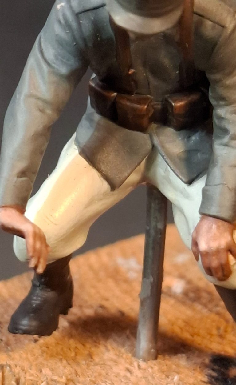 Photos #26 and #27 show the first figure to be tackled, and only really show the pale trousers and green hat and jacket in the first shot, while the details have been added in the second picture.