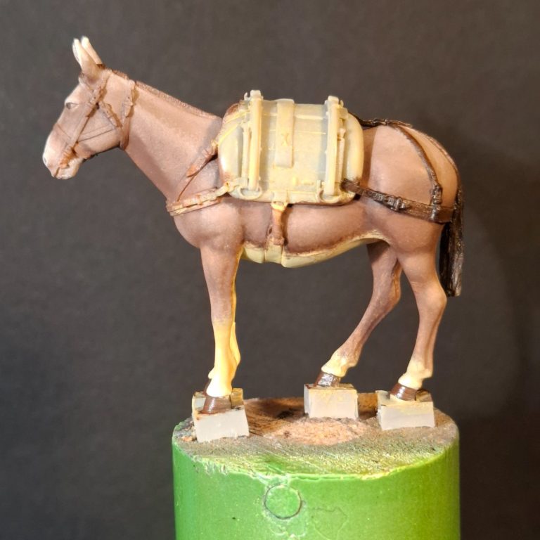 Photo #72 shows the mule part painted, and I looked up references for Italian Alpine mules – and yes, there’s images of them on Google – and they seem to be lighter colours than I’d imagined.