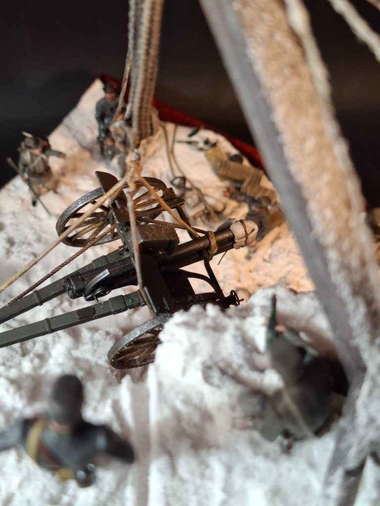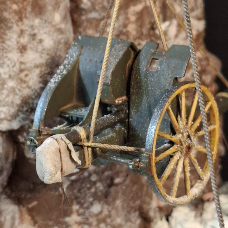 Photo #76, stepping back to look that the scene overall and see if the mule “fits” the narrative, and yes, I think it fills that corner of the diorama very nicely. Whilst it does give a small side story to the diorama overall, I don’t think it pulls the viewer’s attention away from the cannon and the action happening in the main focus of the scene.