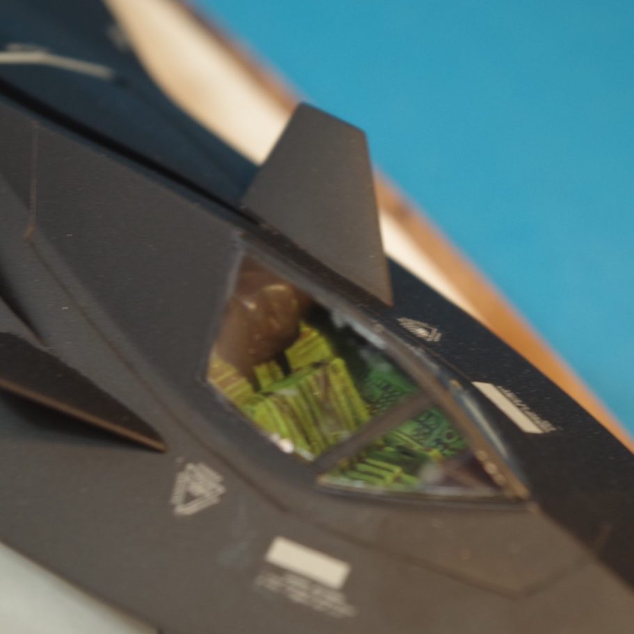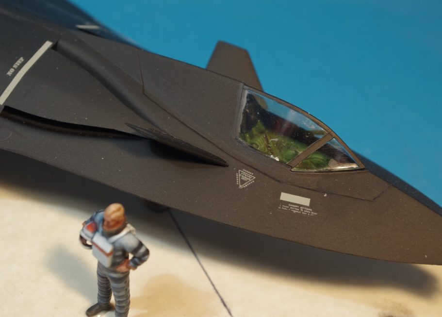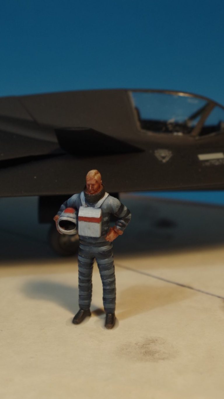 So, I’ve got a driver for this plane ( that comment is so going to draw flak – sorry, couldn’t resist ), a little bit of adjustment to the painting, so that the space suit became a pressure suit similar-ish to the ones worn by SR-71 pilots ( well, about as similar as this aircraft is to the F-117 I guess ), and once painted, glued to the base, and photos taken, well yes, I think that just about finishes the article.