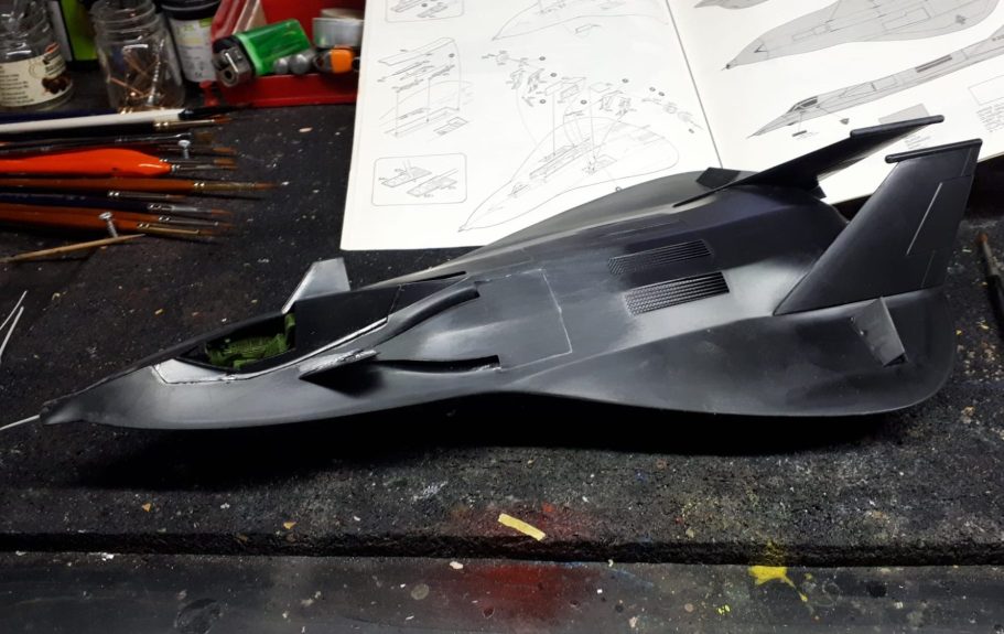 There is a small amount of filler necessary – at the base of the two tail fins and the trailing edge of the intake covers, all visible in WIP photo #1. It’s not a big deal, easy enough to do, and as there’s no other kit of this aircraft on the market, you’ll just have to accept it.