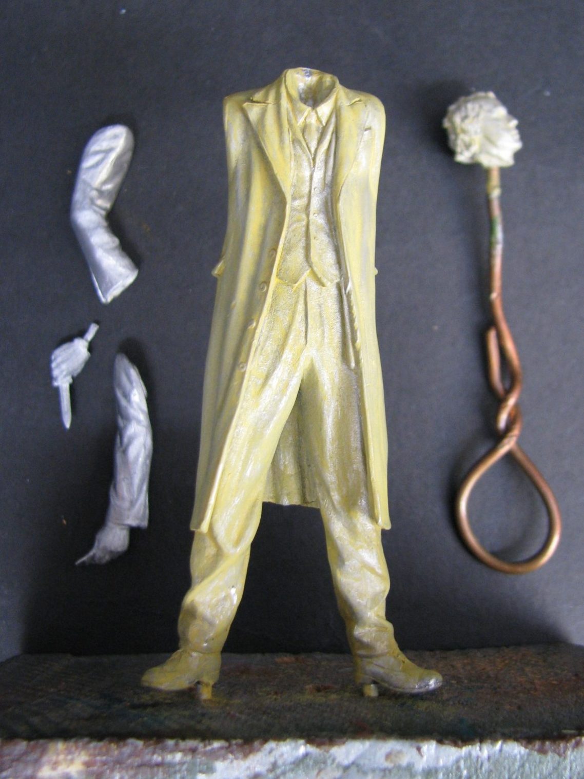 Then in photo #17 I’ve glued everything together. Still need to paint the shoes, gloves, knife and add the playing card, but otherwise he’s pretty much done.
