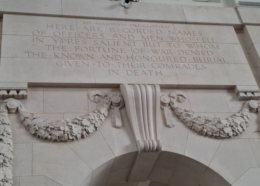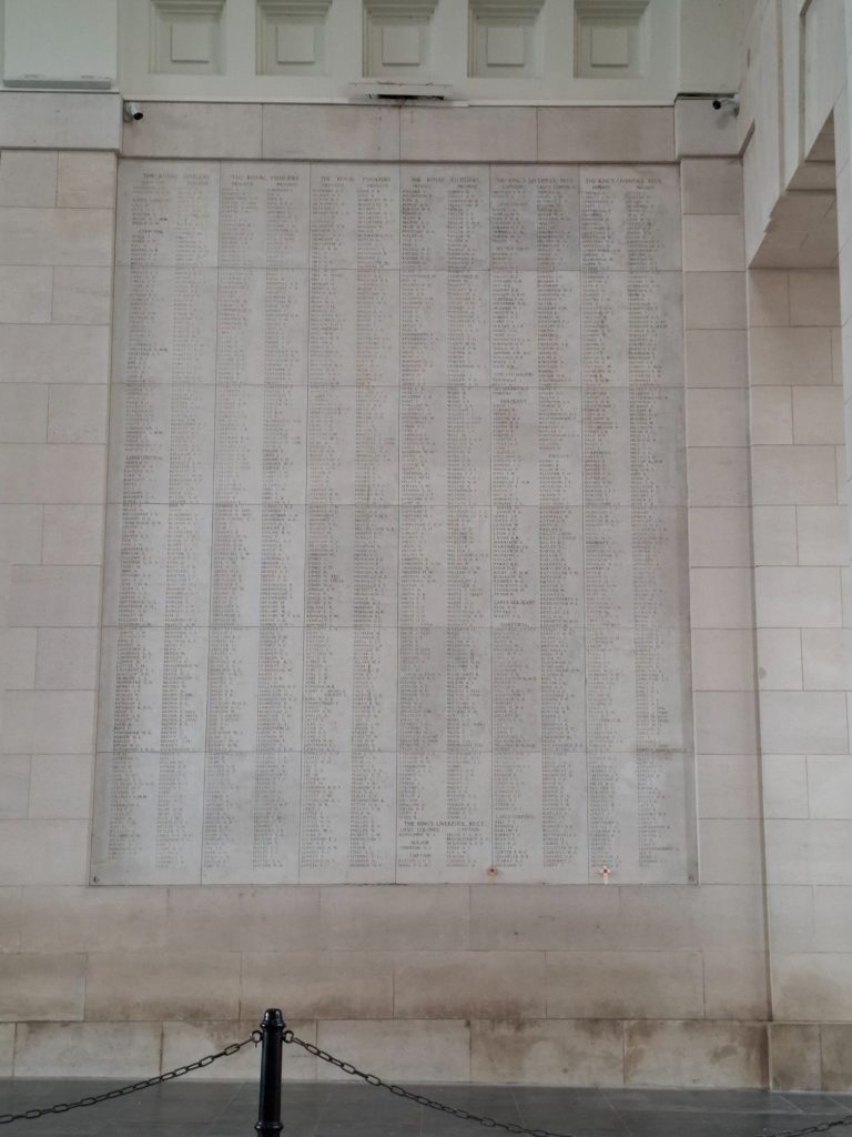 Visiting cemeteries certainly helped me relate to the human cost of war, being confronted by names and particularly the age of the men, and indeed the youthfulness of those who died, however the Menin gate is on a whole different level when it comes to making one take a step back, to gaze upon it, walk under it, and then go up the steps, all the time looking at the walls and friezes carved into it.