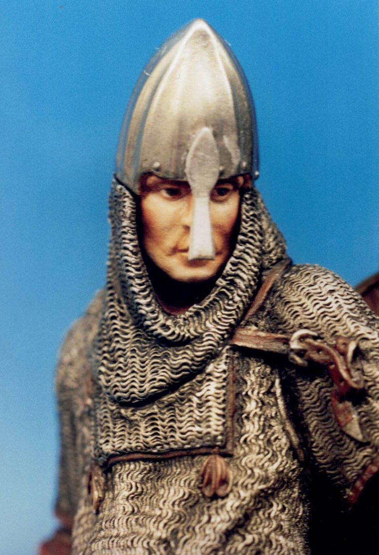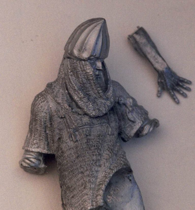 A close-up of the upper body and the left hand is shown in photo #3 and the very fine sculpted detail can be seen in this shot, the sculpting on the knuckles and the forming of the mail being of particularly fine work.